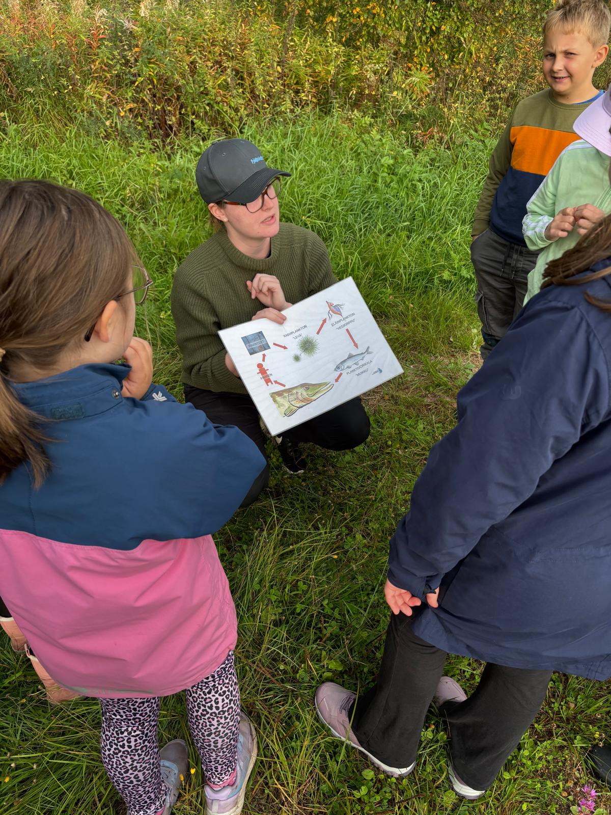 Ravintoketjua esitteli Laura Reuna Pyhäjärvi-instituutista. Opittiin kasvi- ja eläinplanktonin, muikun ja hauen sekä ihmisen paikka ja pelattiin hauskaa ravintoketjupeliä. Uskomatonta, että eläinplankton voi suodattaa eli juoda 100 litraa vettä päivässä.